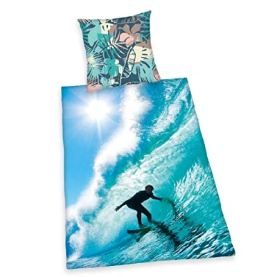 Bedding Set Surfer, Pillow Case 80x80 cm, Duvet Cover 135x200 cm, with smooth-running zipper, Cotton/Renforcé Item number: 4459238050412 Colour: blue Produced according to Oeko Tex Standard 100