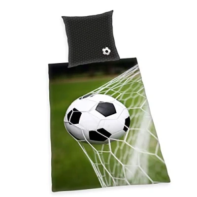The ideal gift idea for every occasion: Breathable youth bed linen with a cool reversible football design for young, inspired players Licensed 2-piece set: Varied design thanks to reversible pillow case with detailed design and reversible duvet cover with single and repeating pattern Quick and easy covering: Pillow and duvet cover with smooth-running zipper High quality material: 100% Cotton/Renforcé, Produced according to Oeko Tex Standard 100, Bright colours, Easy to clean: Washable at 60°C, Tumble dry Contents: 1 Herding Bedding Set, Young Collection, 1 Pillow Case 80 x 80 cm + 1 Duvet Cover 135 x 200 cm, Design: Football, Colour: Multicoloured