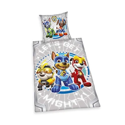 The ideal gift idea for any occasion: Breathable Renforcé bed linen with cool glow-in-the-dark Paw Patrol design Licensed 2-piece set: Varied design thanks to reversible pillow case with detailed design and reversible duvet cover with single and repeating pattern Quick and easy covering: Pillow and duvet cover with smooth-running zipper High-quality material: 100 % cotton/renforcé, Produced according to Oeko-Tex Standard 100, Strong colours, Easy-care: Washable at 40° C, Suitable for tumble dryer Contents: 1 Herding bedding set, Paw Patrol Glow in the dark, 1 pillowcase 80 x 80 cm + 1 duvet cover 135 x 200 cm, colour: grey