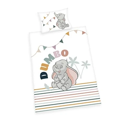 A thoughtful gift idea for any occasion: breathable Renforcé bed linen with cute Disney's Dumbo design Licensed 2-piece set: Varied design thanks to reversible pillowcase with detailed patterns and reversible duvet cover with flat and rotary printing Quick and easy to cover: Pillowcase with hotel closure and duvet cover with smooth running zip High-quality material: 100% Cotton/Renforcé, Made in Green, Produced according to Oeko-Tex Standard 100, Strong colours, Easy-care: Washable at 60°C, Suitable for tumble dryer Contents: 1 Herding Bedding Set, Disney's Dumbo, 1 Pillowcase 40 x 60 cm + 1 Duvet Cover 100 x 135 cm, Colour: Multicoloured