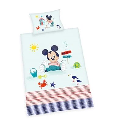 A thoughtful gift idea for any occasion: breathable Renforcé bed linen with cute design from Disney's Mickey Mouse Licensed 2-piece set: Varied design thanks to reversible pillowcase with detailed patterns and reversible duvet cover with flat and rotary printing Quick and easy to cover: Pillowcase with hotel closure and duvet cover with smooth running zip High-quality material: 100% Cotton/Renforcé, Made in Green, Produced according to Oeko-Tex Standard 100, Strong colours, Easy-care: Washable at 60°C, Suitable for tumble dryer Contents: 1 Herding Bedding Set, Disney's Mickey Mouse, 1 Pillowcase 40 x 60 cm + 1 Duvet Cover 100 x 135 cm, Colour: Multicoloured