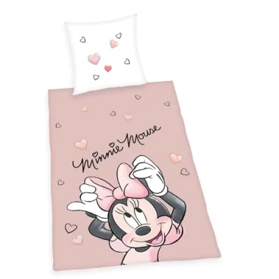 A thoughtful gift idea for any occasion: breathable Renforcé bed linen with cute Disney's Minnie Mouse design Licensed 2-piece set: Varied design thanks to reversible pillowcase with detailed patterns and reversible duvet cover with flat and rotary printing Quick and easy to cover: Pillow and duvet cover with smooth running zip High-quality material: 100% cotton/renforcé, Produced in accordance with Oeko-Tex Standard 100, Strong colours, Easy-care: Washable at 60°C, Suitable for tumble dryer Contents: 1 Herding Bedding Set, Disney's Minnie Mouse, 1 Pillowcase 70 x 90 cm + 1 Duvet Cover 140 x 200 cm, Colour: Pink/White