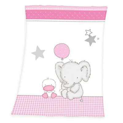 The ideal companion on the go and for every day: cuddly soft baby blanket with cute motif for pleasant dreams day and night Practical size: Ideal as a bedspread, for covering in the baby seat, cradle and stroller and for privacy when breastfeeding Unique design: elephant and duckling picnicking under a starry sky, Vibrant colours, Fine microfiber for high comfort High-quality workmanship: 100% Polyester, Particularly kind to skin: produced according to Oeko Tex Standard 100, Easy to clean: Washable at 40°C, Tumble dry Contents: 1x Herding baby blanket, Baby Best, Elephant, Dimensions (WxL): 75 x 100 cm, Colour: White/Pink