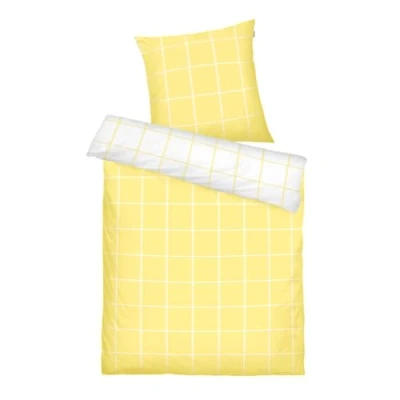 Herding Tom Tailor Bed Linen Large Check Light Lemon & Crisp White, 80 x cm + 155 220 cm, 100% Cotton/Renforcé, with Reversible Motif and Coloured Branded Zip