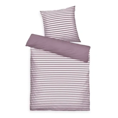 Timeless renforcé bed linen with reversible motif from the Home of Colours by Tom Tailor, with cover for duvet and pillows, attractive design for a fresh touch in the bedroom Varied reversible motif: narrow stripes as an eye-catcher on the front, plain back for a harmonious overall look Loving details: woven label, coloured branded zip, can be combined with decorative cushions or a blanket for coordinated colour concepts Skin-friendly and easy-care: 100% breathable cotton, Oeko-Tex made in green, easy to clean in the washing machine at 60°C without loss of quality and suitable for tumble drying Box contents: 1x Tom Tailor renforcé bed linen, medium stripes, colour: purple, white (cosy mauve & crisp white), size: 155 x 220 cm + 80 x 80 cm, material: 100% cotton, item no. 00002005039