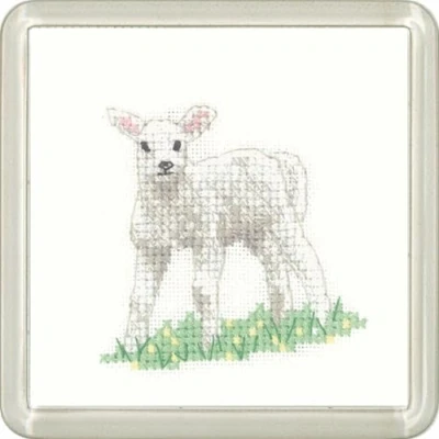 Heritage CFLB1448 A Counted Cross Stitch Kit Aida Lamb (A), Coaster Size 7.5x7.5cm
