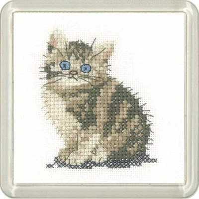 Heritage CFTK1260 A Counted Cross Stitch Kit Aida Tabby Kitten (A) Coaster Size 7.5x7.5cm