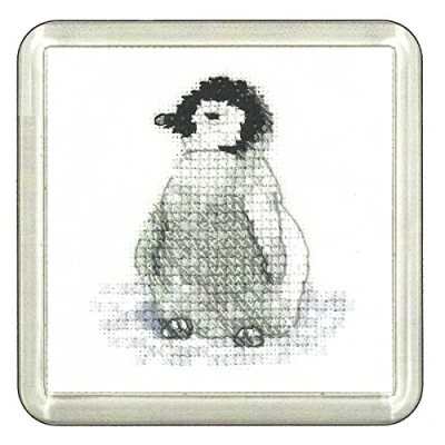 Heritage Crafts CFPE1393 A Counted Cross Stitch Kit Penguin Chicks (A) Coaster Size 7.5x7.5cm Multicoloured