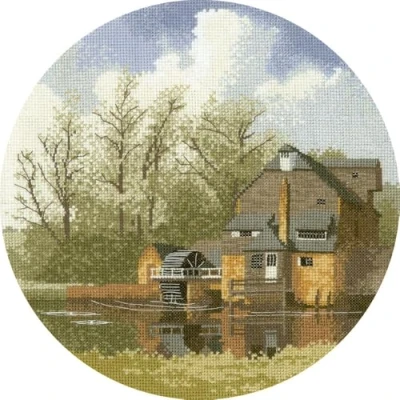 Watermill Cross Stitch Kit from Heritage Crafts Contains DMC threads presorted on a card, clear charts, 27 count Zweigart evenweave fabric, full instructions and a needle. Design Size is 10" (25cm) in diameter Designed by John Clayton, Manufacturer: Heritage Crafts