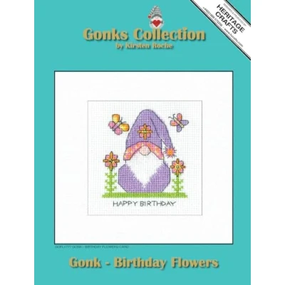 Heritage Crafts Gonk Birthday Flowers Cross Stitch Greeting Card