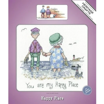 Happy Place - counted cross stitch kit from Heritage Crafts Part of the Heritage Craft Golden Years Range by Peter Underhill These kits are available on 14 count aida, and contain only whole stitches. Kits Contain : Zweigart fabric, DMC stranded cottons sorted on to numbered cards, a needle, and clear charts and instructions Design Size: 14 x 13.5cm (5 1/2" x 5 1/4") GYHP1752A