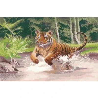 UK Fabric Thread & Needle Embroidery Kit Counted Pattern Finished size: 32 x 22 cm. Original name: Tiger (A) Manufacturer number: PGTI1009-A, Series: John Clayton Power & Grace, Manufacturer: Heritage Crafts
