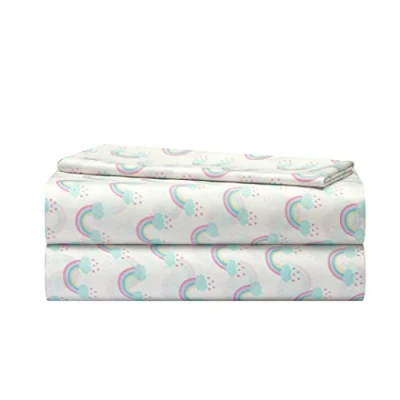DESIGN: Printed Rainbows are printed on this bright white sheet set for a fun and colorful look. Sheets are perfect for added a pop of color and design to any room. Perfect for kids, teens and young adults of all ages! ULTRA SOFT AND COZY: Super soft Polyester. High quality material. The polyester material is super soft for extra comfort and for a perfect nights sleep all year round. LONG LASTING DURABLE CONSTRUCTION: Crafted From Durable Microfiber. The Easy-Care Microfiber Is Machine Washable. Just Pop It In On Gentle Cycle With Cold Water And Air Dry Or Tumble Dry On Low. The Bright Colors Will Last Through Multiple Washes! WHAT'S INCLUDED: 3 Piece Set includes Fitted Sheet, Flat Sheet, 1 Standard Pillow Case. Fits standard Twin Size Beds.