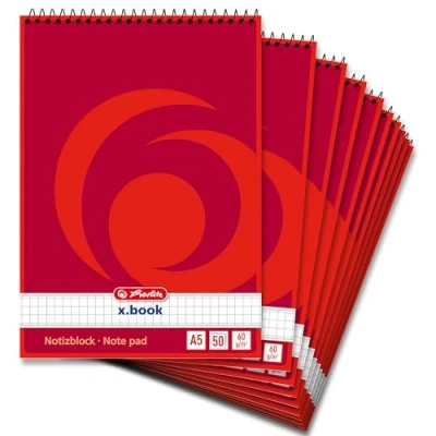 Herlitz 110510 Spiral Notebook A5, 50 Sheets, Pack of 10 Chequered a5