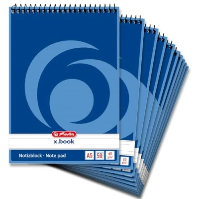 Herlitz 110510 Spiral Notebook A5, 50 Sheets, Pack of 10 Lined A7