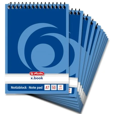 Herlitz 110510 Spiral Notebook A5, 50 Sheets, Pack of 10 Chequered A7