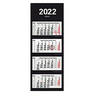 Herlitz 50036035 4 Month Wall Calendar 2022, 33 x 87.5 cm, Pack of 1