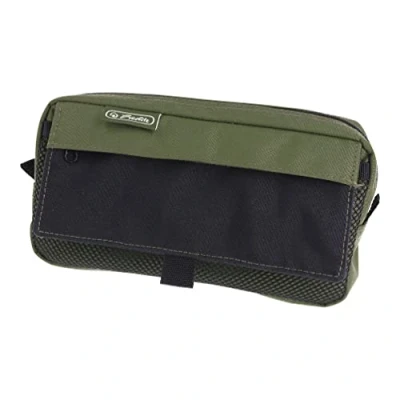 Herlitz 50039012 Pencil Case with 2 Outer Pockets, Olive/Black, Olive/Black
