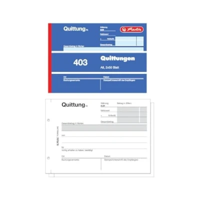 A6 receipt 403 Wood-free paper 2 x 50 sheets, with carbon paper With security print Perforated punched