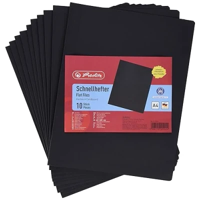 flat file A4, Herlitz manilla-recycling-cardboard, intense colours, folded, ready for use for top-down and bottom-up filing, index-printed Blue Angel, black, 1 piece