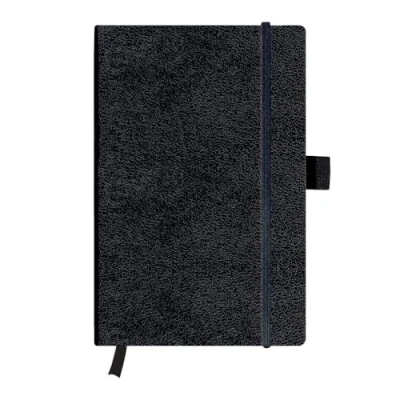 Notebook with designed cover. Black leather optics Chequered ruling A5 paper size Number of sheets: 96 Paper weight: 80 g/m²