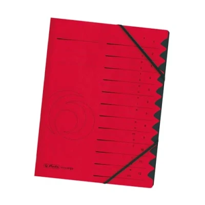 12 compartments with viewing holes and tabs Strong quality cardboard on the outside, black manila cardboard inside With organisational print 1-12, 2 elastic bands Colour: red 1 piece