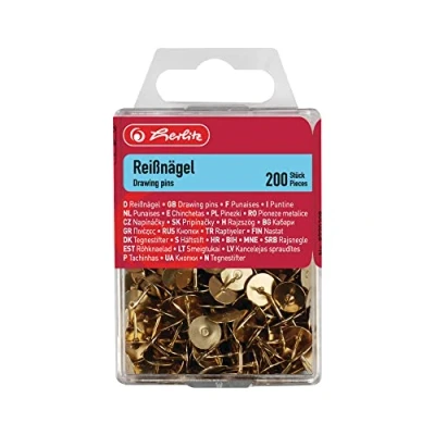 Herlitz Drawing Pin Nail Round Plastic Covered Metal with Hanging Box Assorted Colours (Pack of 200 )