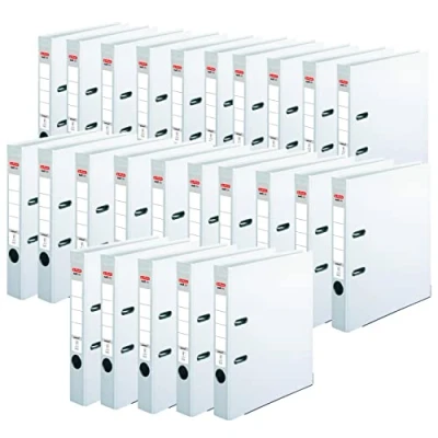 Folder A4, spine width: 5 cm, with special paper cover in white With edge protection, glued spine label and logo embossing under the finger hole Stable, FSC Mix, "Blue Angel" certified Colour: white Pack of 25