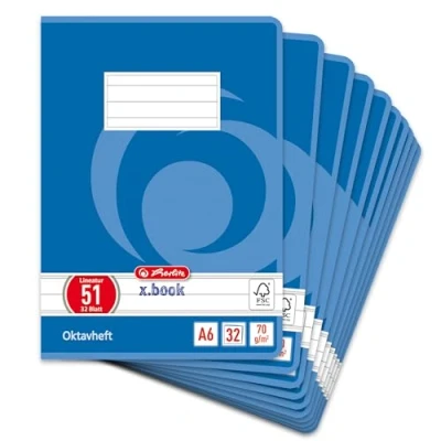 Herlitz Octave Notebook, A6, 60 Sheets, FSC Mix, Pack of 10 Rot, Kariert