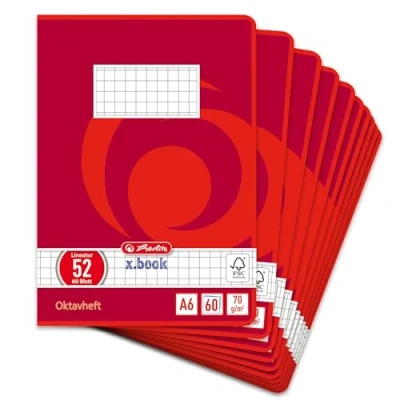 Herlitz Octave Notebook, A6, 60 Sheets, FSC Mix, Pack of 10 Rot, Kariert