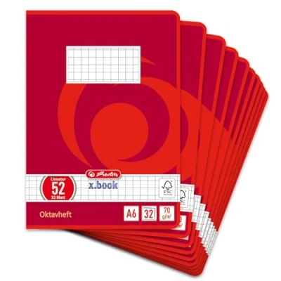 Herlitz Octave Notebook, A6, 60 Sheets, FSC Mix, Pack of 10 Chequered red