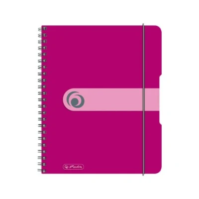 Herlitz to go spiral-bound A5 notepad; wood-free paper; 80 g/m²; white; 80 pages; special ruled squares; perforated Micro-perforated; rounded corners; Twin Wire; plastic cover sheet; berry motif; with elasticated fastener; pack of 2