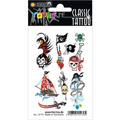 HERMA 15179 Temporary Tattoos Skull, Pack of 9, Adhesive for Sticking, Fake Stickers with Pirate Ship Motif, Children's Sticker Carnival Children Adults