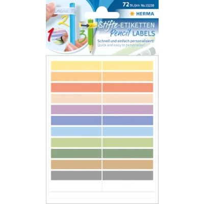 Herma 15238 Permanent Labels (Made of Paper, 10 x 46 mm, self Adhesive, for Children) 60 Pieces, Several Colours