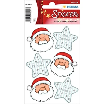 HERMA 15261 Christmas Stickers, Santa Greetings (18 Paper, Matte) Self Adhesive Decoration, Permanent Labels for Christmas, Gifts, Crafts, Advent Calendar, Colourful