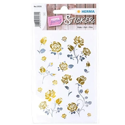 HERMA 15531 Creativ Sticker, Edelrosen (15 Stickers, Foil, Glossy), Self Adhesive, Permanent Adhesive Motif Labels for Girls and Boys, Gold/Silver