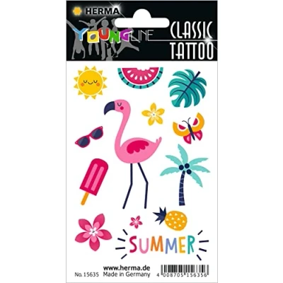Skin-friendly transfer tattoos with creative motifs for young and old Colourful tattoo stickers give a distinctive style Ideal for fancy dress, carnival, Halloween, children's birthday party or theme party Decorative party tattoos for a shiny appearance at any festival Box contents: 13 x Herma adhesive tattoos made of film, made in Germany – Summerfeeling