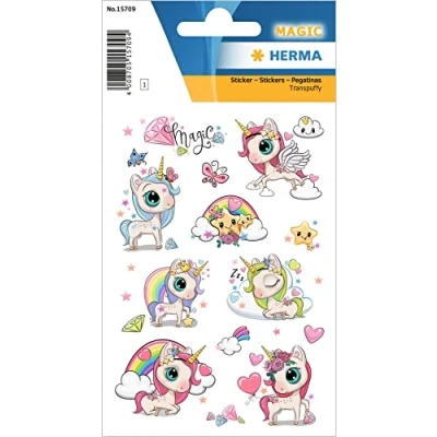 HERMA 15709 Puffy Stickers for Children, Enchanted Unicorn (16 Stickers, Plastic, Matte) Self Adhesive, Permanent Adhesive Motif Labels Girls and Boys, Colourful