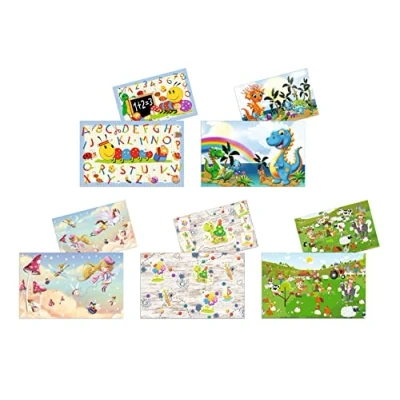 Robust, full-surface printed desk mat made of coated cardboard for the nursery Absolute flatness and particularly pleasant feel thanks to the soft-touch surface, washable Printed on both sides with high-quality matt colour print for your desk Ideal for girls and boys, for starting school, school or as a birthday gift Box contents: 10 x Herma desk pads, kindergarten friends, colourful (length/width: 550 x 350 mm), dinos (2x), fairy dance (2x), Frieda & Friends (2x), small farm (2x), sandpit friends (2x)