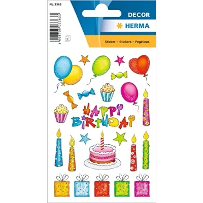 HERMA 3363 Message Stickers, Birthday (46 Paper, Glitter), Self Adhesive, Permanent Adhesive Motif Labels for Girls and Boys, Colourful