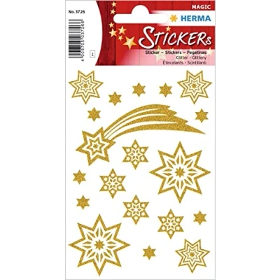 HERMA 3726 Stickers Stars Glitter Gold, Pack of 19, Star Made Foil, Christmas Stickers, for Gifts, Advent Calendar Decoration, Children Reward, DIY Crafts
