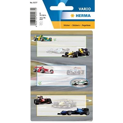 HERMA 5577"Racing Cars" Book Labels Self Adhesive School for Children, Girls and Boys, 6