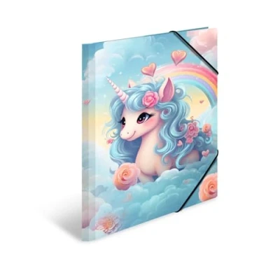 HERMA A3 Happy Unicorn Portfolio Folder, Corner Folder Made of Cardboard with Nursery Motif, Elastic Band, Inner Flaps and Print for Boys, Girls Children