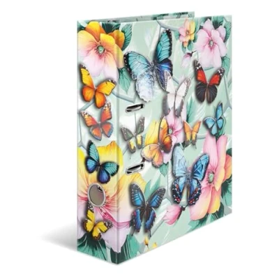 Herma Folder A4 Butterfly, 7 cm Wide, Children's Ring Binder with Flower Motif, Colourful Lever Arch File Shiny Finish, Inner Print for Boys and Girls