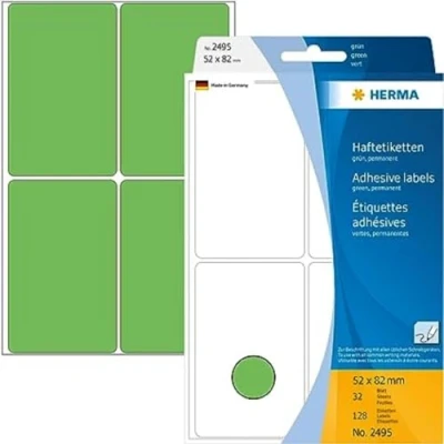 HERMA Multi Purpose Labels, 4 Labels per Sheet, 32 Sheets, 52 x 82 mm, 128 Self Adhesive Large Stickers, Blank Sticky for Office Kitchen Home, Green