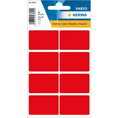 HERMA Multi Purpose Labels, 8 Labels per Sheet, 5 Sheets, 25 x 40 mm, Self Adhesive Stickers, Blank Sticky for Office Kitchen Home, Red