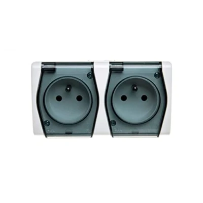 Hermes2 Airflow Socket 2 Way Z/U 16A IP44 with Hinged Lid Full White Smoky 1022 01 Electroplast Electrolyte 5907569151066