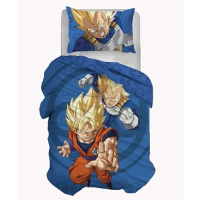 Fears duvet cover consisting of: sleeping bag + pillowcase The duvet cover measures 155 x 200 cm, while the pillowcase measures 50 x 80 cm. The duvet cover set is available in standard single size, suitable for single beds, offering a perfect fit and full coverage for optimal comfort at night. Perfect as a gift for young dragonball fans, this single duvet cover set adds a touch of magic to your bedroom, stimulating the creativity and imagination of children and teenagers. Easy to wash and maintain, the set is machine washable at 30 degrees, resistant to fading and breaking, ensuring a long life and preserving the intensity of the colours over time.