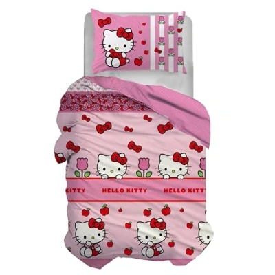 hermet Hello Kitty Single Bed Duvet Cover Set, + Pillowcase, Set with 155 x 200 cm, 100% Cotton, (No Fitted Sheet)