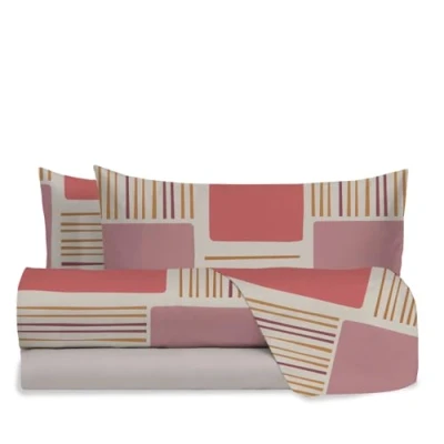 hermet Julia Coral Double Bed Sheet Set, 100% Cotton Pattern, Top + Fitted 2 Pillowcases,
